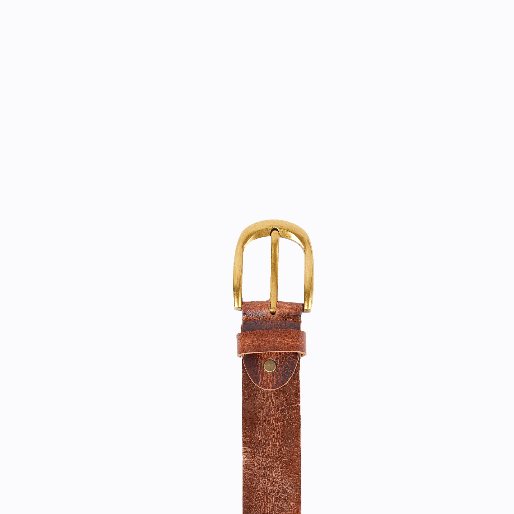 Handmade Rugged Brown Leather Belt with Golden Buckle